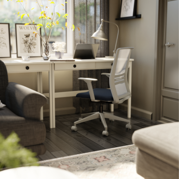 Completa regulagem de altura (assento, braços e encosto) e inclinação do encosto para suporte lombar ideal. Produto em total conformidade com a norma NR17.
