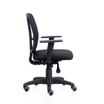 Completa regulagem de altura (assento, braços e encosto) e inclinação do encosto para suporte lombar ideal. Produto em total conformidade com a norma NR17.